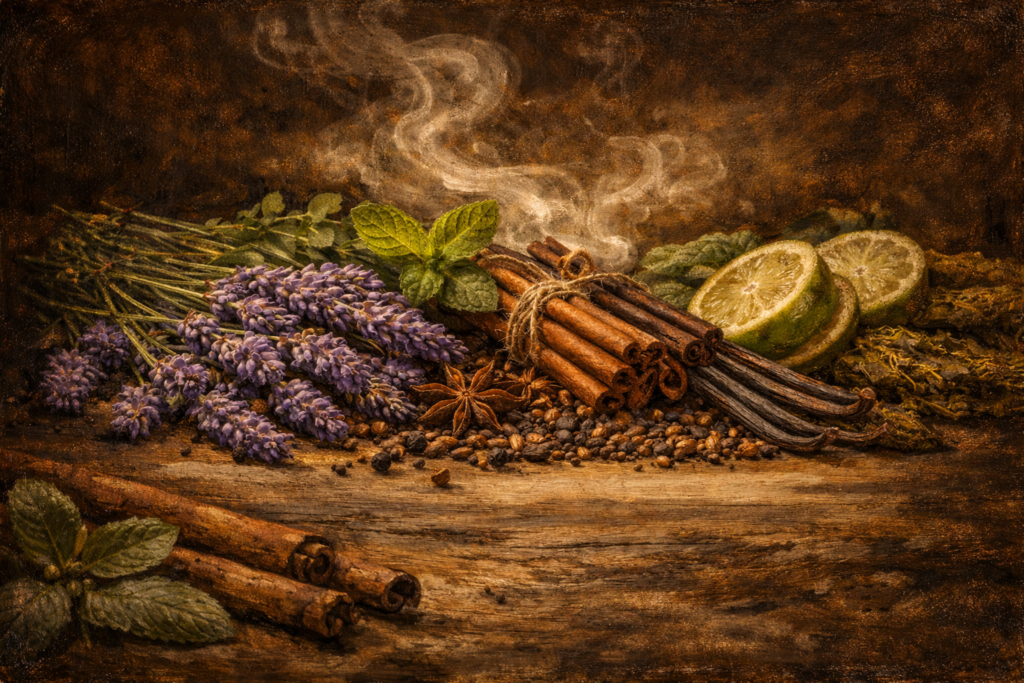 Vanilla · Lavender · Fresh Spices · Cinnamon · Green Notes · Earthy Woods