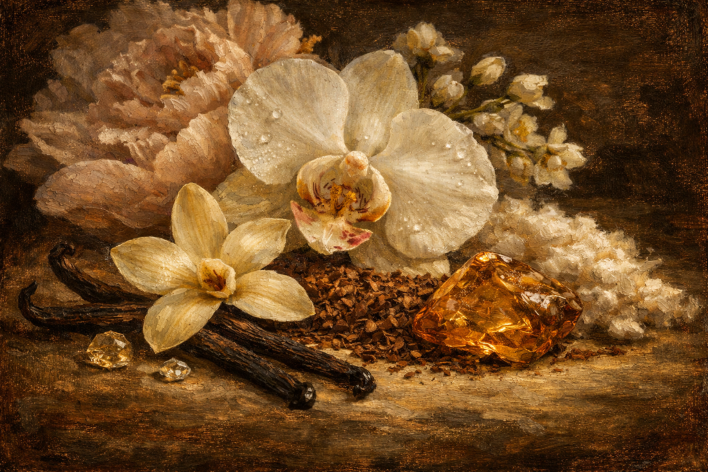 Amber · Vanilla · Powdery Musk · Floral · Tonka Bean · Aquatic Nuance