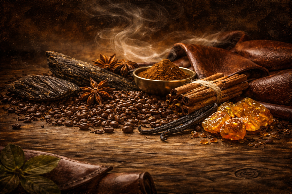 Aromatic · Oud · Leather · Warm Spices · Coffee · Vanilla